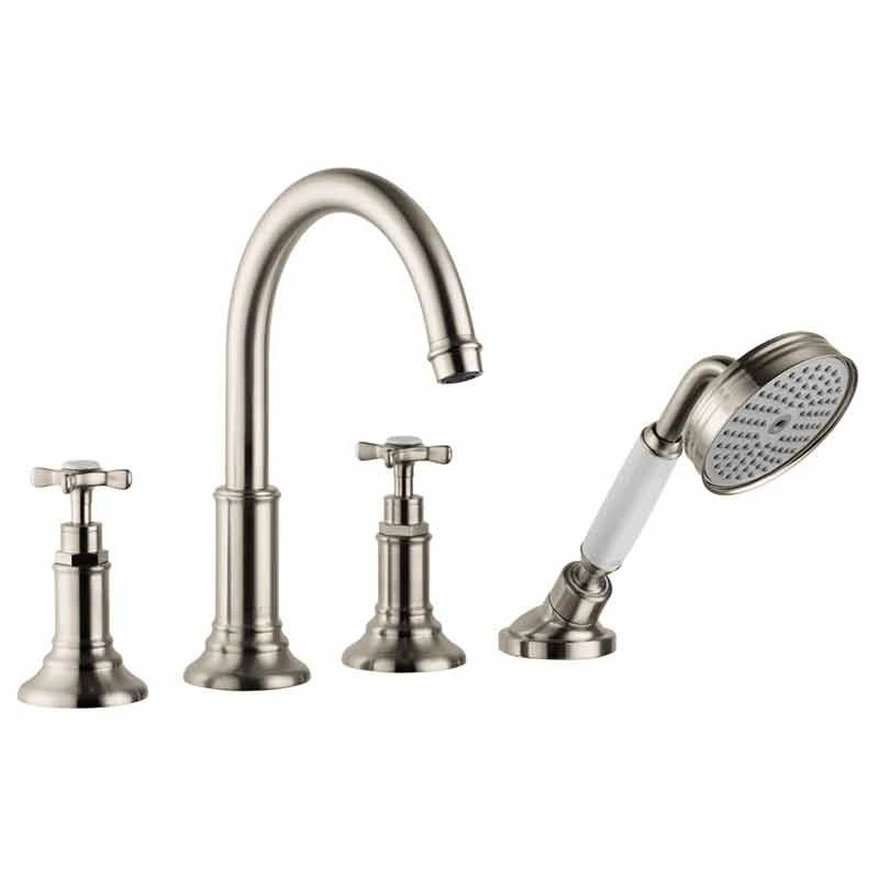 Axor Montreux 4-Hole Tile Mounted Bath Mixer with Cross Handles – Brushed Nickel – 16544820