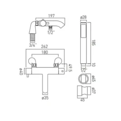 Vado Life Thermostatic Bath Wall Mounted Bath Shower Mixer With Shower Kit – LIF-123T+K-CP