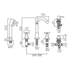 Vado Elements Water 5 Hole Bath Shower Mixer Deck Mounted – Chrome – ELW-135-3/4-C/P