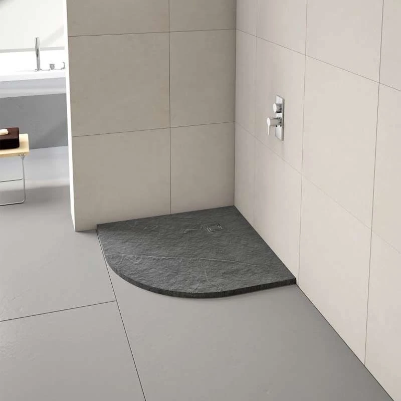 This Merlyn Truestone Quadrant Shower Tray can be used with wetroom screens and enclosures. It is made from stone resin with a textured slate finish. The Merlyn Truestone shower tray includes an integrated Fast Flow waste system for added convenience. It measures 30mm high and can be installed in or on top of a floor.